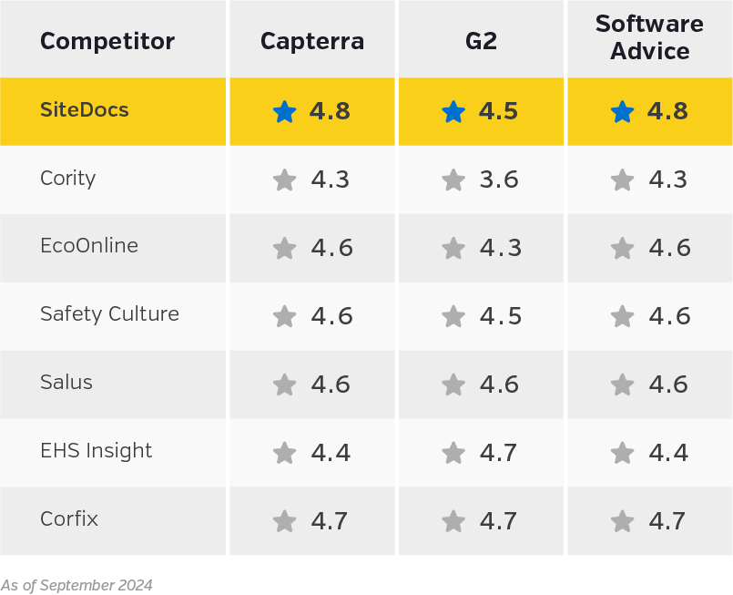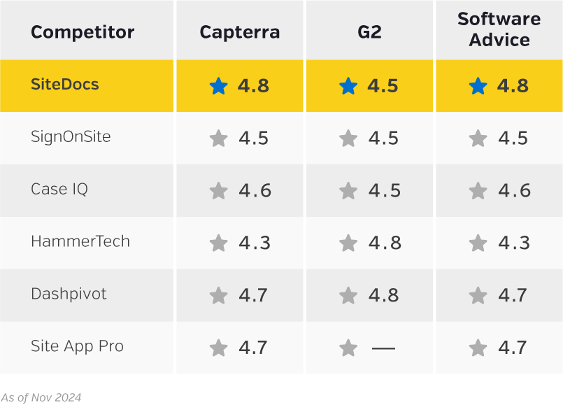 Is your current safety management software holding you back? Discover how SiteDocs surpasses competitors with its customizable and flexible solutions, real-time insights and user-friendly design.