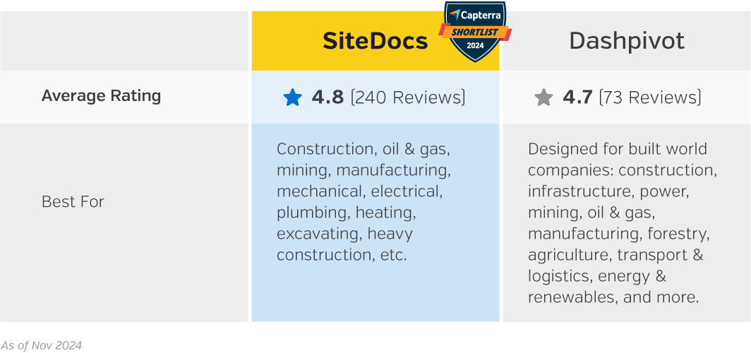 SiteDocs vs Dashpivot on Capterra